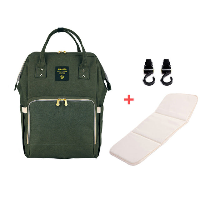 Fashion Mummy Maternity Bag for Baby Care has an internal multi-functional partition, convenient for taking in and out baby's stuff. It has tin foil warm insulation pockets to keep feeding bottles warm. It is made of good quality Polyester material with size approximately about 39*27*21cm.