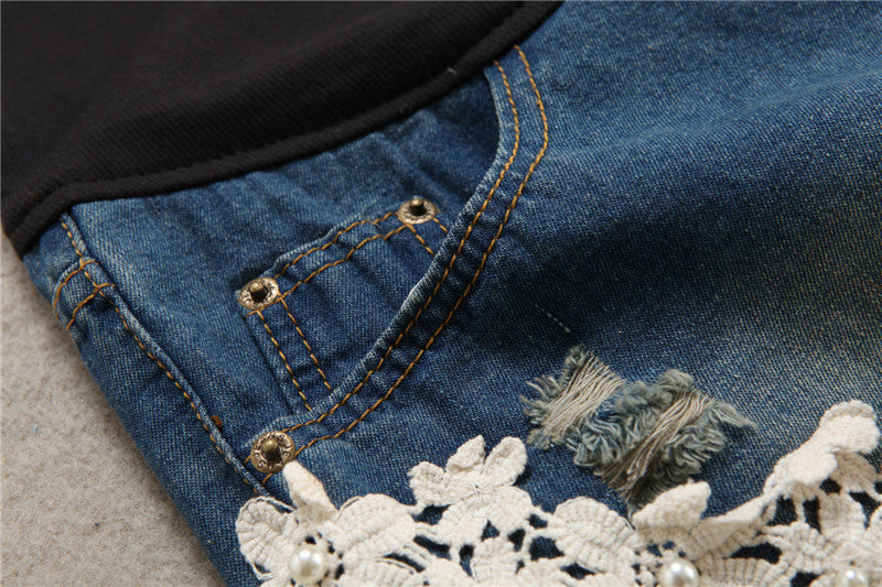 Fashioned Denim Maternity Shorts for Pregnant Women