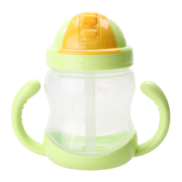 It is a baby's self drinking cup for outdoors used. This Cute Baby Cup Feeding, DrinkingWater is made of Food grade PP plastic. It has a lovely, portable, leakproofness and a slip cover design.