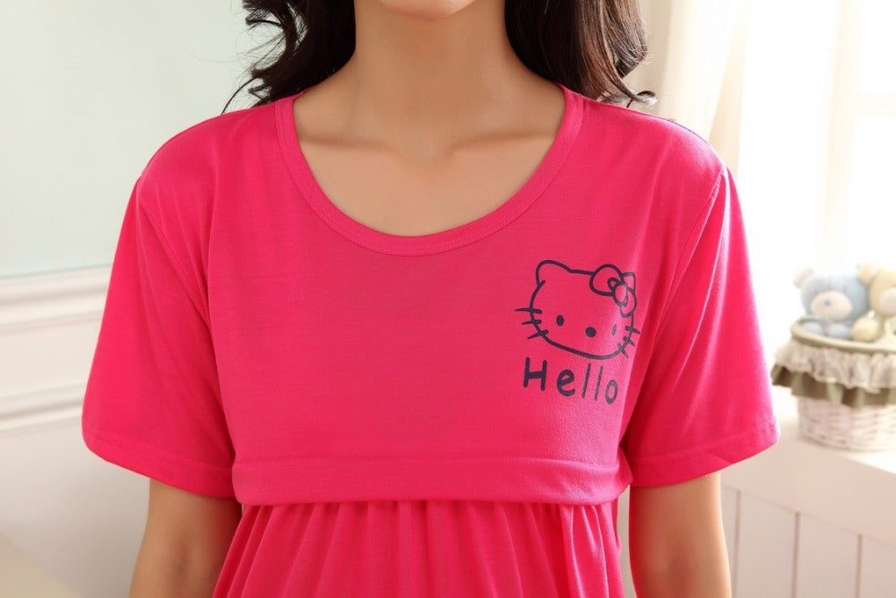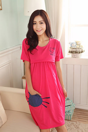This lovely Maternity Nursing Dress is perfect for Summer. It comes with a 2 piece suit. The fabric is made of high quality Chiffon, Modal and Cotton.
