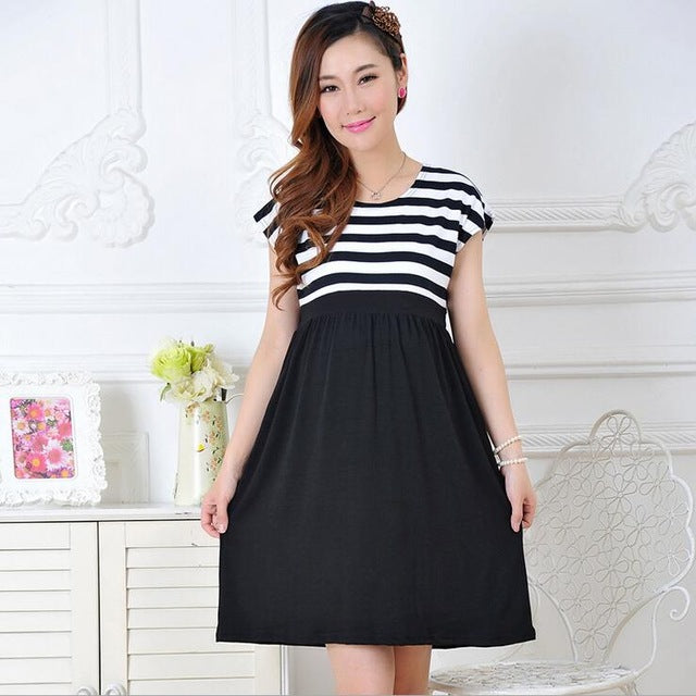 Fashioned Maternity Dress for Pregnant Women fits your body perfectly of your pregnancy! The narrow stripe will make you look slimmer. It is made of high quality Cotton and Polyester material.