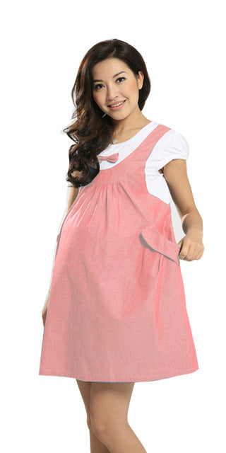 Sweet Summer Fashioned Pregnant Dress is lovely with its bow decoration design. This maternity knee-length maternity dress is made of high quality Cotton.